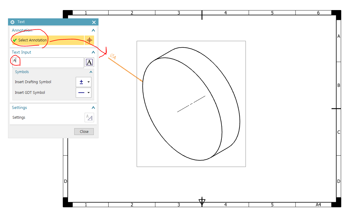 문자로 바꾸고 싶은 치수를 클릭하고, text input 에 원하는 문자를 입력하면됩니다.