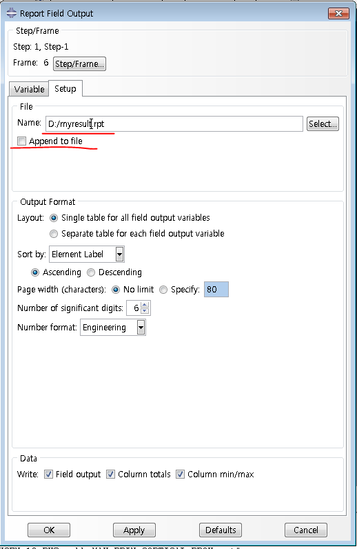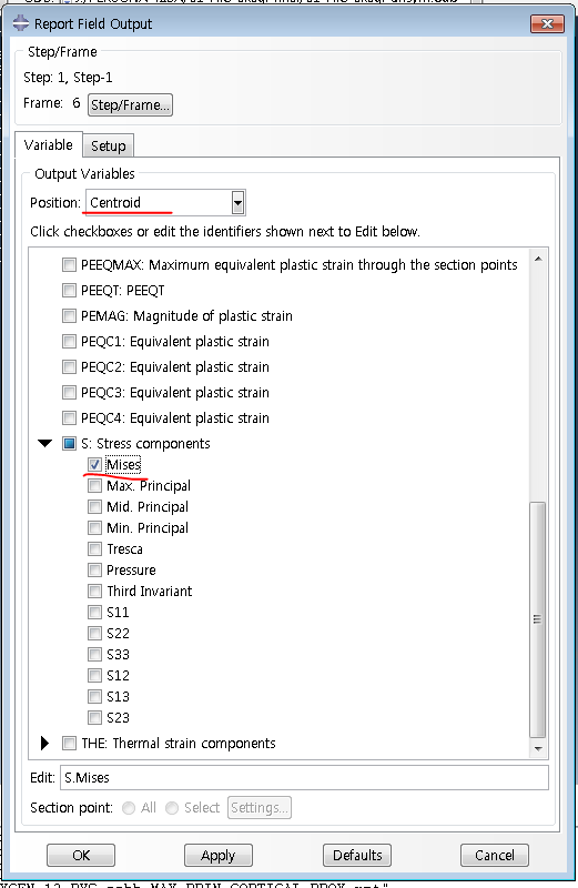 Position 도 선택해준다. node마다 출력할 수도 있고, element 중심의 값만 출력할 수도 있다.