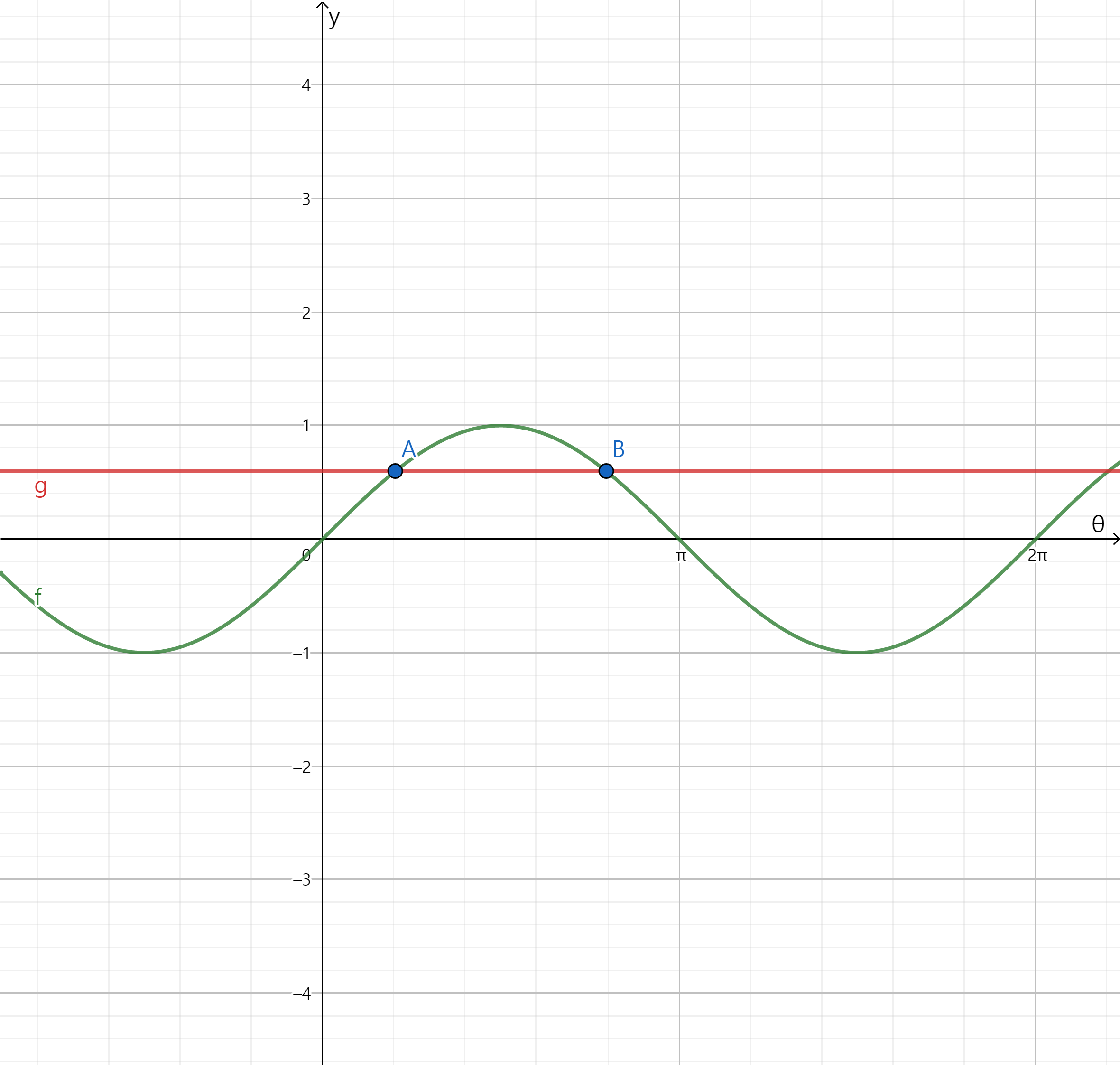 이를 유념하여, 두 $\theta$를 모두 구해야 합니다. 두 값의 합은 $\pi$ 이므로 한 값을 구하고 나서 $\pi$에서 빼주면 나머지 값이 구해집니다.