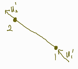 각 요소의 로컬 좌표계에서의 x방향 변위는 u' 입니다. y뱡향 변위는 v' 인데 truss 에서는 y방향 변위가 없으므로 u'