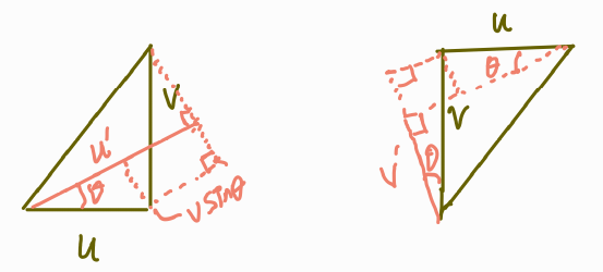 이때 $u_{1}$은 음수가 되어야 하는데 $\theta$를 지면과의 각도로 정의하면 둘다 양수가 나옵니다. $\theta$ 는 아래와 같이 정의해야 합니다.